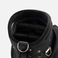The Lux Midsize Staff bag has created a category all of its own in our collection as it boasts all the functionality of our top-level cart bags with the bold styling of our tour-proven staff bags. Intuitive organization, such as front facing pockets and dual personals pockets on either side of the bag allow for easy access while on a golf car, push cart, or trolley. With two dedicated water bottle sleeves and a thermal-lined cooler pocket, this midsize staff has ample room for beverages. This midsize staff bag is the culmination of our design team‚”ôs pursuit to bring together elegant styling with tour proven performance. Like our tour-trusted staff bags, this bag was built to last with features like a steel ring top, chrome hardware, and a sturdy front grab handle. Lux detailing includes premium leather touchpoints, quilted stitching, and microfiber-wrapped club dividers.